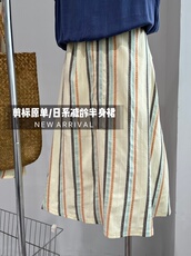 紫藤花蔓。酵洗天然100支苎麻A字中长款半身裙显瘦仙女裙独家自制