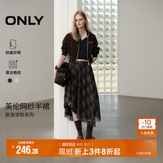 ONLY2025秋季新款复古格纹印花纱网不对称下摆A字中长款半身裙女