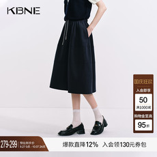 KBNE藏青色抽绳中长款半身裙女2025秋季新款花苞裙小个子a字半裙