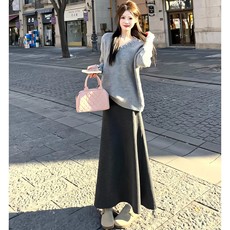 灰色遛弯半身裙女春秋2025新款高腰宽松鱼尾裙a字针织中长款裙子
