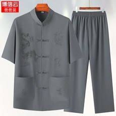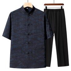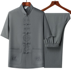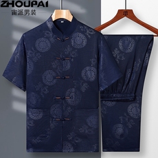 中老年唐装男短袖套装中国风男装盘扣汉服老人爷爷夏季衣服爸爸装