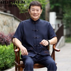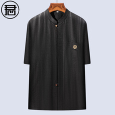 正品中老年人唐装短袖太棉麻衬衫套男装爸爸夏季中式极服汉服爷爷