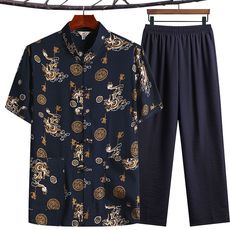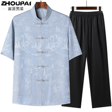 唐装男中国风中老年仿醋酸冰丝短袖夏季薄款爸爸装爷爷中式套装