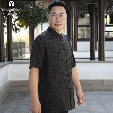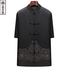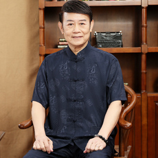 中年男士唐装夏季短袖上衣中式男装爸爸爷爷中老年人国风禅意华服