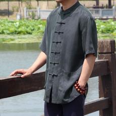 中国风夏季男士唐装薄款棉麻短袖衬衫中式复古休闲中老年半袖夏装