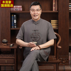 棉麻唐装男短袖套装中老年爸爸夏装男士老人衣服爷爷中国风汉服男