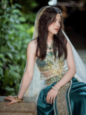 影楼主题服装新中式园林风外景摄影情侣拍照写真礼服绿色鱼尾婚纱