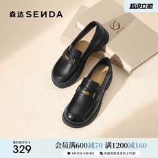 森达真皮新款乐福鞋女商场同款英伦软底皮鞋通勤牛皮黑色厚底女鞋