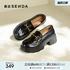 森达厚底增高乐福鞋女款26春新款商场同款英伦风真皮黑色单鞋皮鞋