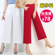 八分裤女2021夏季薄款雪纺阔腿裤女高腰直筒裤女麻纱料九分休闲裤