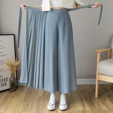 雪纺九分冰丝阔腿裤女夏季2025薄款裤裙垂感高腰百褶宽松休闲裤裙