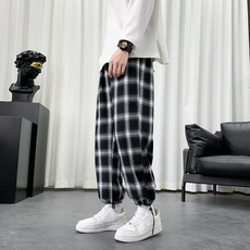 黑白格子裤男春夏宽松直筒九分裤男潮流束脚阔腿ins超火休闲长裤