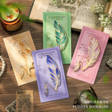 青釉手帐配件金羽毛 爱心相框盒可打开装饰摆拍别针挂件书签链条