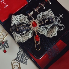 原创黑红蝴蝶结暗黑风哥特别针书签手帐绑带手帐本子A5678装饰