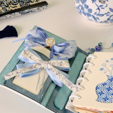 原创青花瓷蓝色玉兰花雪纺蝴蝶结别针书签中国风装饰书签别针配件
