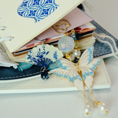 原创青花瓷配件挂件小扇子别针书签滴油蝴蝶装饰夹挂件挂链链条
