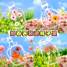 干花书签植物标本塑封膜瓶子里的春天收集压花手工diy材料透明压花朵树叶粘贴画制作大号玻璃瓶创意学生礼物