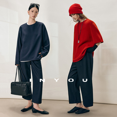 因由 极简ROW圆领轻运动长袖上衣休闲九分裤卫衣套装女秋冬二件套