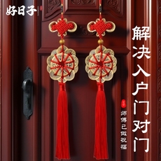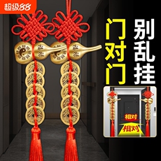 五帝钱门对门纯铜真品葫芦铜钱入户门卧室吉祥中国结古币镇宅挂件