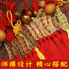 门对门五帝钱天然葫芦挂件吉祥结真品纯铜钱串开口客厅对窗入户门