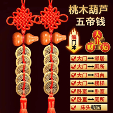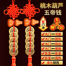 五帝钱入户门对门桃木葫芦挂件真品纯铜钱中国吉祥结窗户卧室厨房