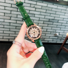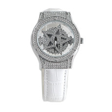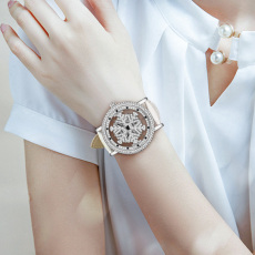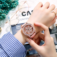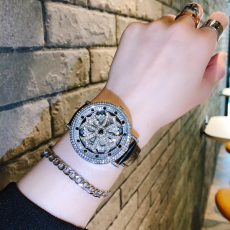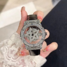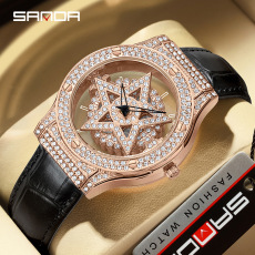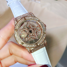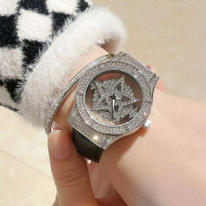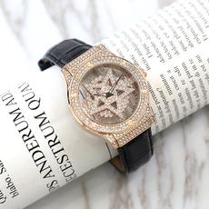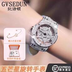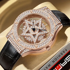 五芒星手表时来运转旋转满天星镶钻抖音直播爆款网红女士真皮女表