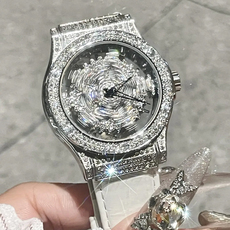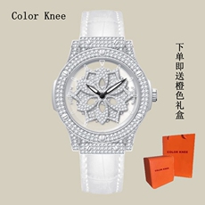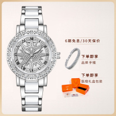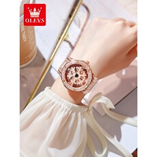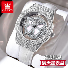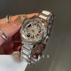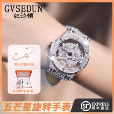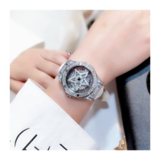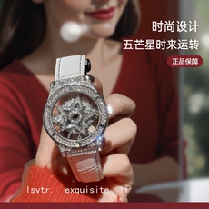 五芒星转盘高颜值满钻手表时来旋转轻奢镶钻小众女士防水镂空腕表
