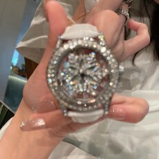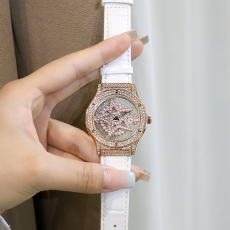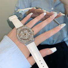 夏季高级感大表盘雪花转盘五芒星镶钻女神手表轻奢小众满天星石英