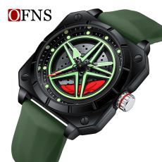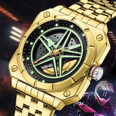 轮毂汽车旋转镂空五芒星防水夜光刹车TE卡钳37创意炫酷方形男手表