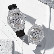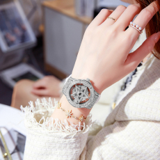 满钻五芒星手表女时来运转镂空透底旋转满天星女士时尚潮流时装表