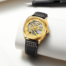 正品新款奥刻品牌全自动机械镂空男表时尚五芒星商务夜光防水金表