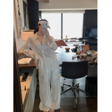 pusumede 不费力穿搭 莱赛尔亚麻长袖白衬衫女宽松阔腿休闲裤套装
