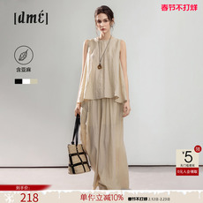 Sue.M 100%进口亚麻裤子白色老钱风松弛感阔腿裤宽松慵懒风套装女
