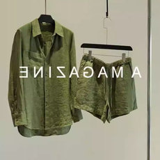 牛X货 巨炸裂!独特苔藓绿意大利色织软亚麻时髦慵懒休闲衬衫套装