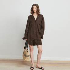 Carolingian松弛感套装!重磅亲肤亚麻Row风廓形防晒衬衫+短裤