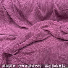 柔糯透气垂感 玫红色褶皱砂洗白霜感棉麻面料衬衫连衣裙亚麻布料