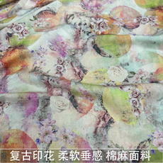 复古玫瑰印花柔软垂感亚麻面料衬衫连衣裙家居布艺棉麻布料春夏