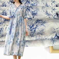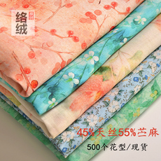 络绒原创 天丝苎麻数码印花布料高档亚麻汉服连衣裙旗袍服装面料