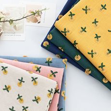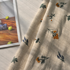 一枝花清新棉麻布印花亚麻碎花布料 diy手工面料桌布满2米包邮