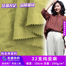 素色棉麻布料 32支纯亚麻休闲服布 复古汉服衬衫裙子唐装亚麻面料