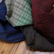 高端品牌剩余纯亚麻色织布料条纹格子连衣裙旗袍用料复古袍子面料