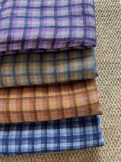 2025123四个格子亚麻布料半米价格14支暗条纹宽度1.4