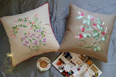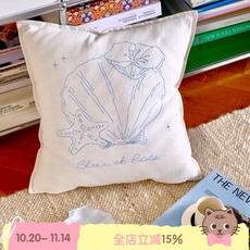 日系简约田园手绣风格花卉植物优质亚麻抱枕靠枕套藤椅沙发床靠垫