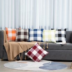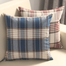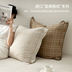 经典亚麻格子靠套大小号沙发汽车正方形枕头套家饰布艺