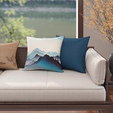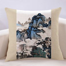 新中式山水画抱枕靠垫亚麻中国风沙发客厅大靠背书房茶室椅子靠枕