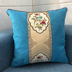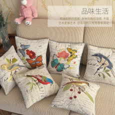 中式刺绣沙发抱枕套田园亚麻棉麻床头靠垫套45 60 70方花鸟靠枕