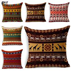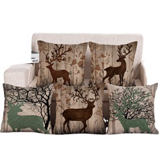 亚马逊北欧鹿复古棉麻抱枕套来图个性亚麻沙发靠垫套护腰枕布艺