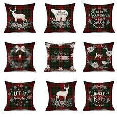 新款圣诞红色格子字母麋鹿亚麻抱枕套汽车沙发靠枕圣诞快乐抱枕