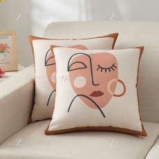新款抽象棉麻抱枕北欧亚麻办公室沙发汽车靠垫公司礼品可加印LOGO