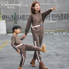 亲子装一家三口四口春秋装2019新款潮卫衣运动套装母女装母子洋气
